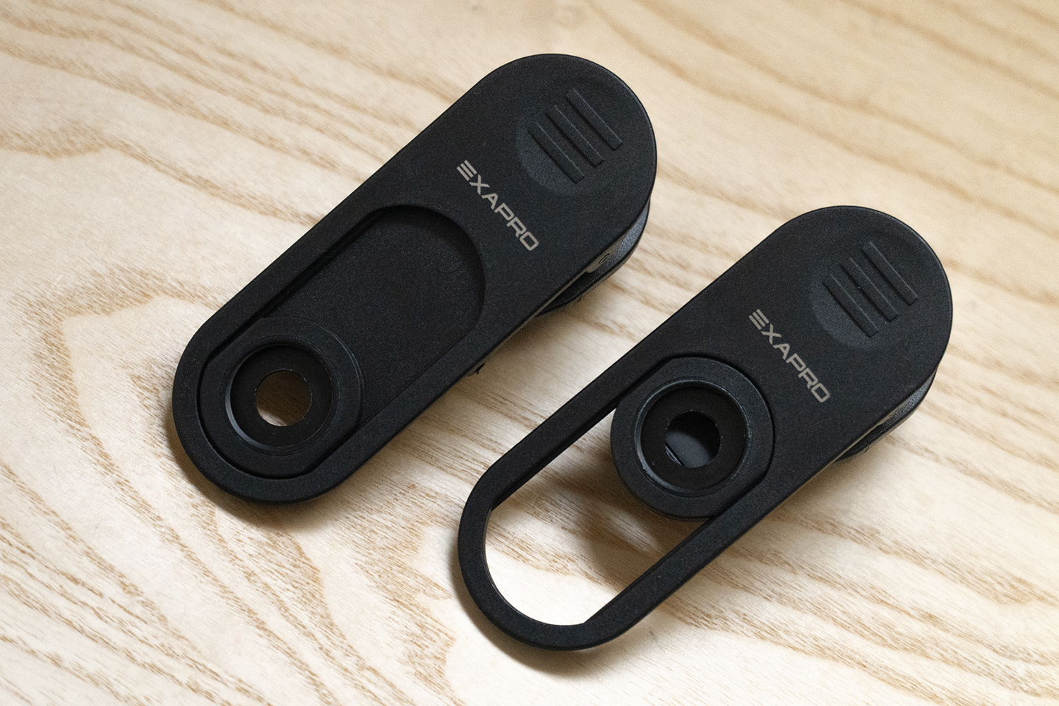 「EXAPRO クリップレンズ」の装着方法は、とても簡単です。どのレンズにも共通のクリップが付属していて、クリップのレンズを付ける位置は上下にスライドします。