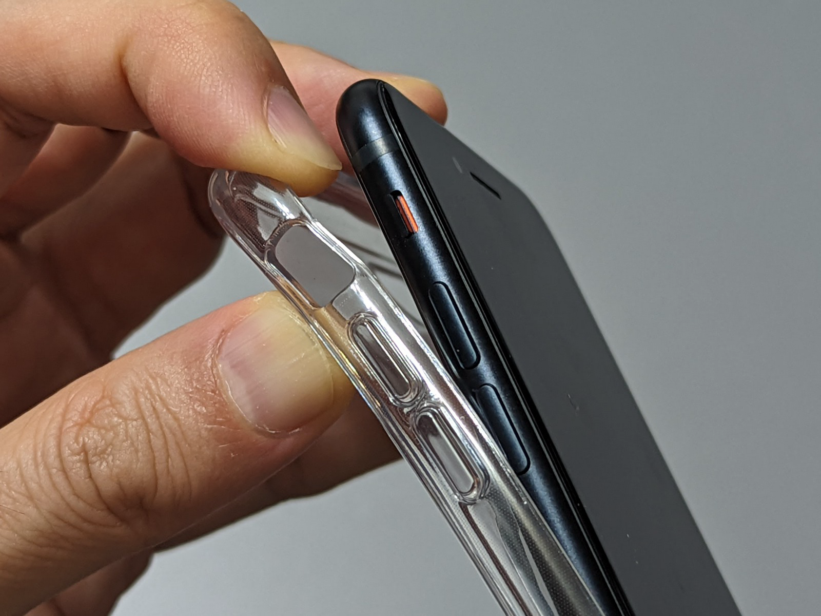 それならば、ということで、保護ケースの側にこのMagSafeを取り付けるためのマグネットを埋め込んでしまったのが、今回紹介するトリニティのMagSafe対応ハイブリッドクリアケースです。