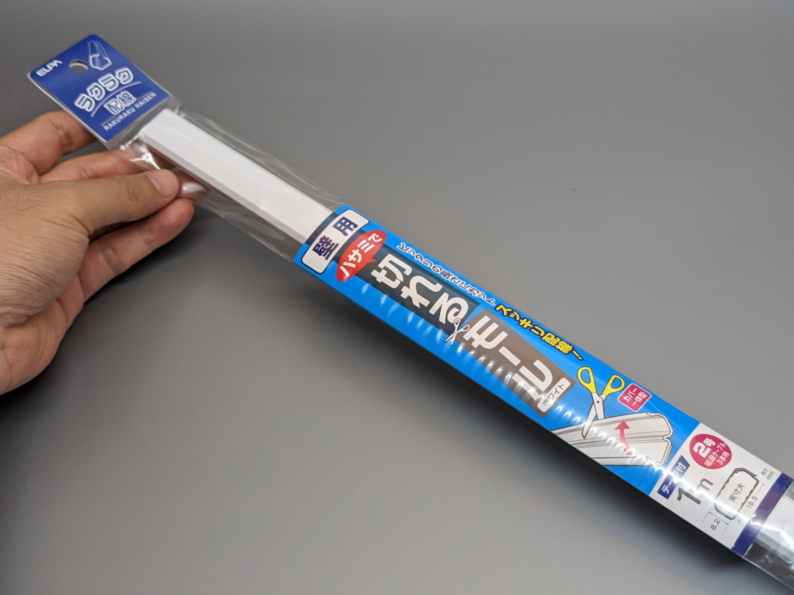 また本製品をよく見るとハサミマークが表示された切り取り線が等間隔で並んでおり、ハサミを使って設置場所に合った長さに切り詰められます。切り落とした端は再利用できませんので、なるべく合った長さを購入したほうがよいのは事実ですが、中途半端に長さを余らせてしまって邪魔になる心配はありません。