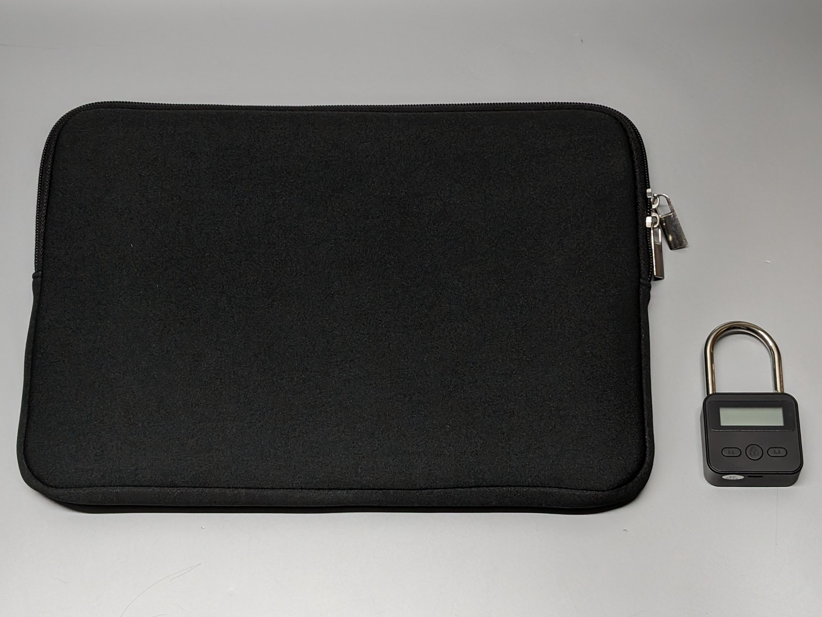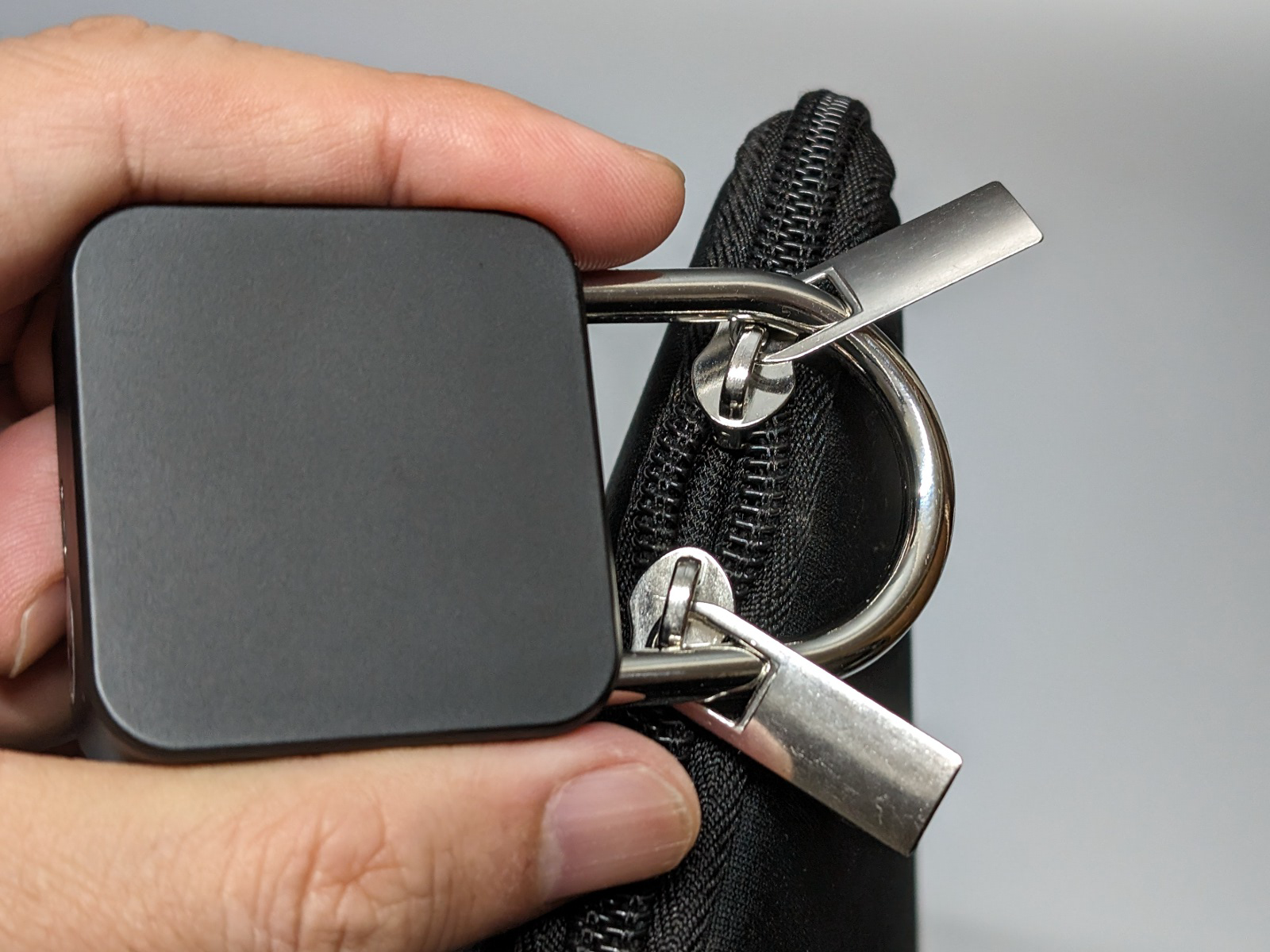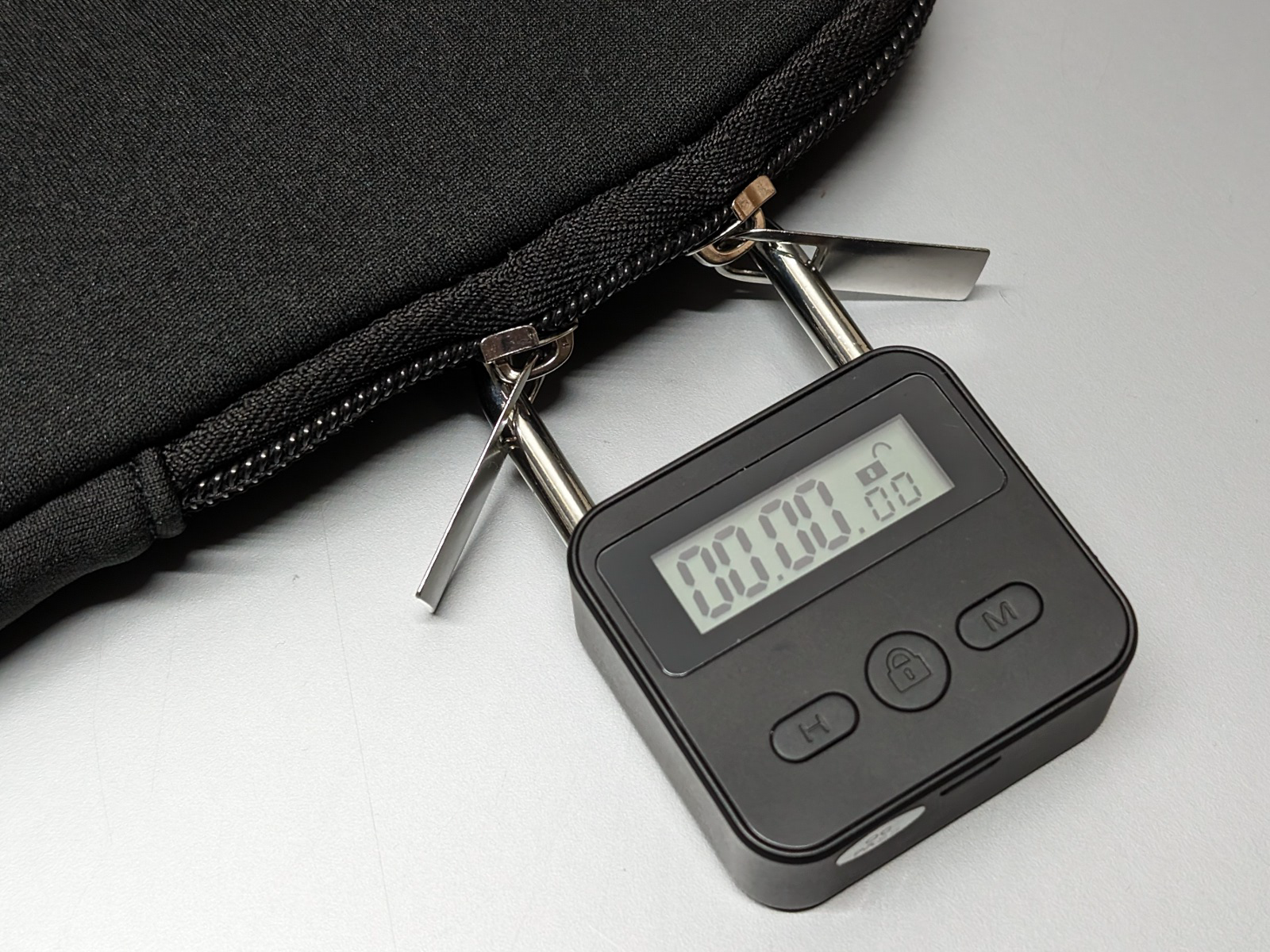 今回紹介するのは、そうしたスマホやタブレットのロックに使える、タイマー付きのデジタル南京錠です。構造そのものは一般的な南京錠と同じですが、最大99時間99分までセット可能なタイマーを内蔵しています。スマホやタブレットをポーチに入れ、そのファスナー部分に本製品のフックを通して施錠することにより、時間が来るまでは開けられなくするという一品です。