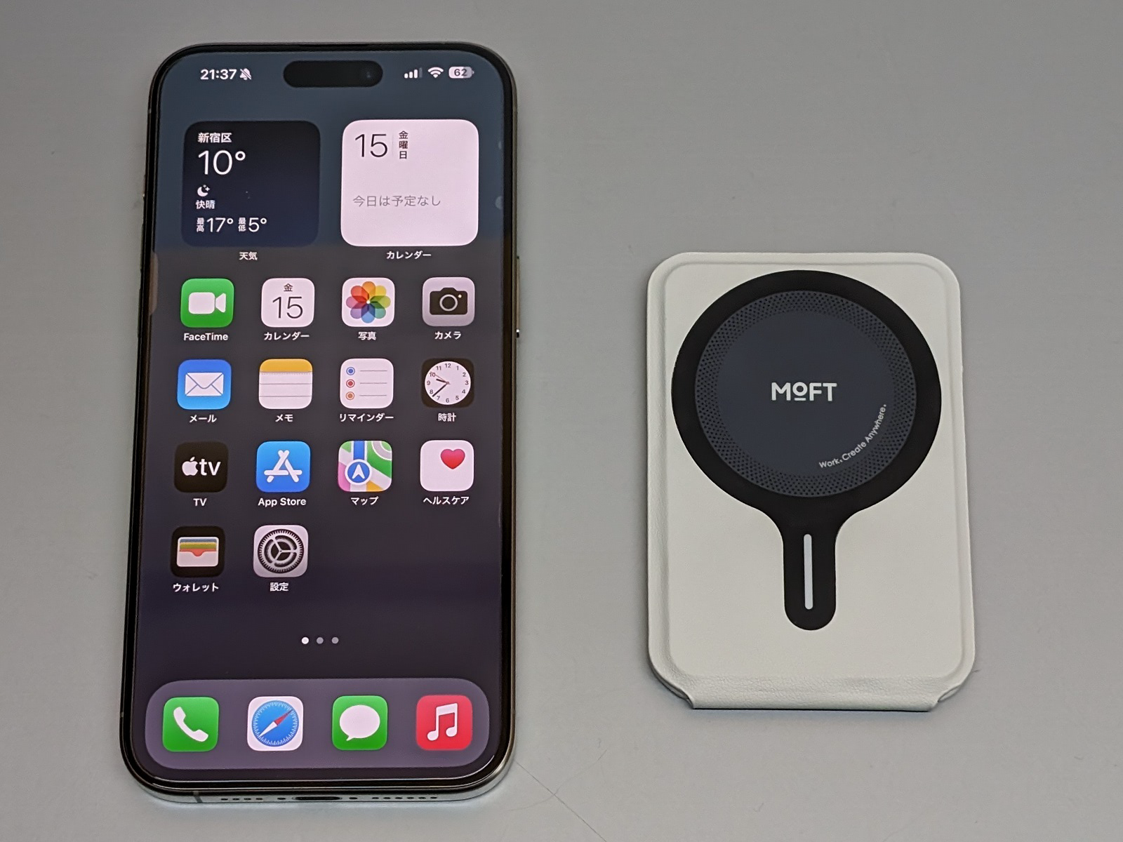 ちなみにiPhoneを吸着できるのは、MagSafeの形状が印刷してある表面のみ。本製品はMagSafeアクセサリーとしてはかなり磁力が強いことから、もしかすると裏面でも吸着できてしまうのでは? と思ってしまいますが、試したところまったく吸着しませんでした。ほぼ完全に磁力を殺せているのは、むしろ興味深いところです。