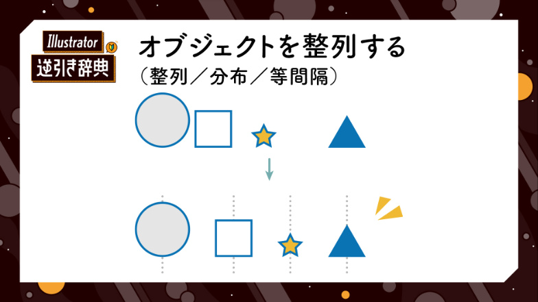 Illustratorで「やりたいこと」「わからないこと」「知りたいこと」を目的別に調べられるWeb辞典。知っておきたい基本操作を体系的に分類して掲載しています。Illustrator初心者の方からおすすめです。記事は随時更新。