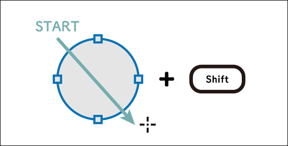 円は楕円形ツールで作成します(図1)。shiftキーを押しながらドラッグすると、正円ができます(図2)。正円をベースにすると、縦横比が同じキラキラ模様を作れるので、用途に合わせて正円で制作してください。