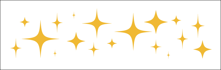 以上、Illustratorできらきらの模様を作る方法でした。簡単に作れて、使える場面も多い装飾なので、ぜひオリジナル素材として作りためてご利用ください。