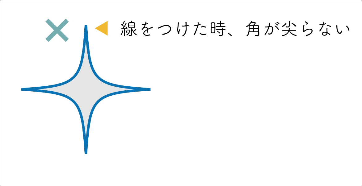 これでキラキラの模様はできましたが、この方法で線色をつけると、角が尖らない場合があります(図5)。