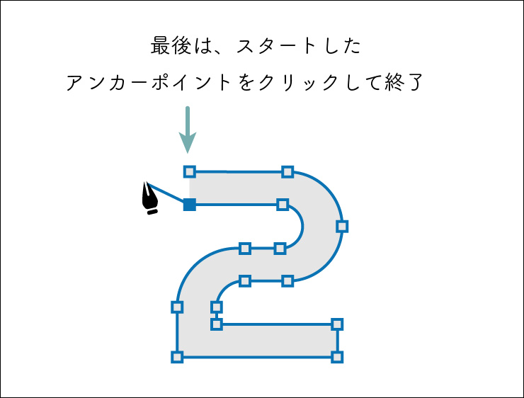 4.曲線から曲線の描き方(ペンツールの基本の操作と練習)