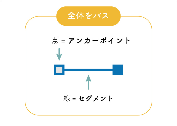 この点のことを「アンカーポイント」、結ばれた線のことを「セグメント」、こうしてできたものを「パス」と言います(図3)。