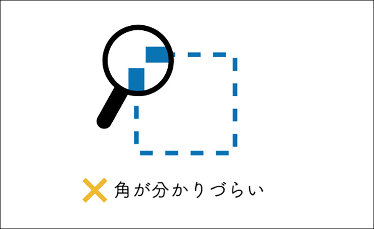 図形の枠線もここで解説した方法で点線にできますが、図形の場合は、点線を設定すると角が欠けて、輪郭がわかりづらくなることがあります(図13)。