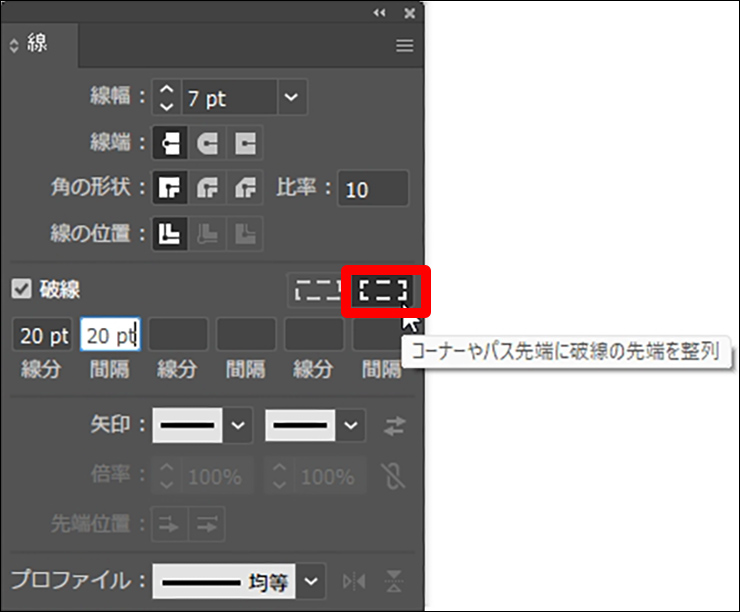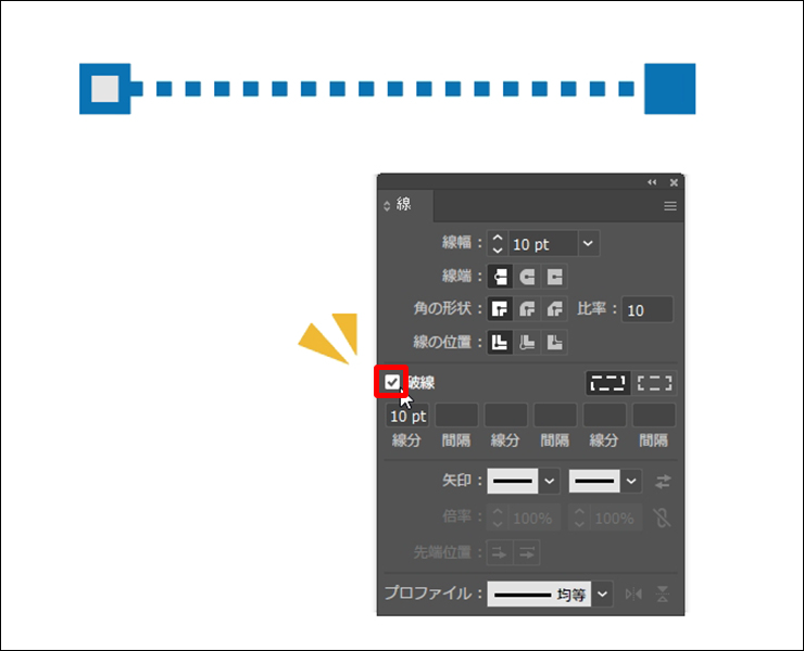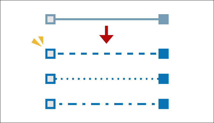 ■使用する機能「線パネル」「破線」「線端:丸型線端」