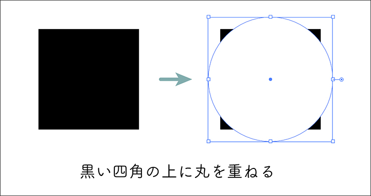 次に楕円形ツールを選択して、[塗り]を白、[線]なしで、shiftキーを押しながらドラッグして正円を描き、四角の前面、中心をそろえるように配置します(図2)。きれいな集中線を描くポイントとしては、この円をベースの四角よりも一回り大きく円を作っておくことです。