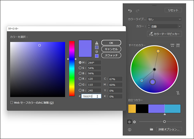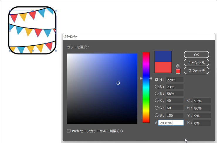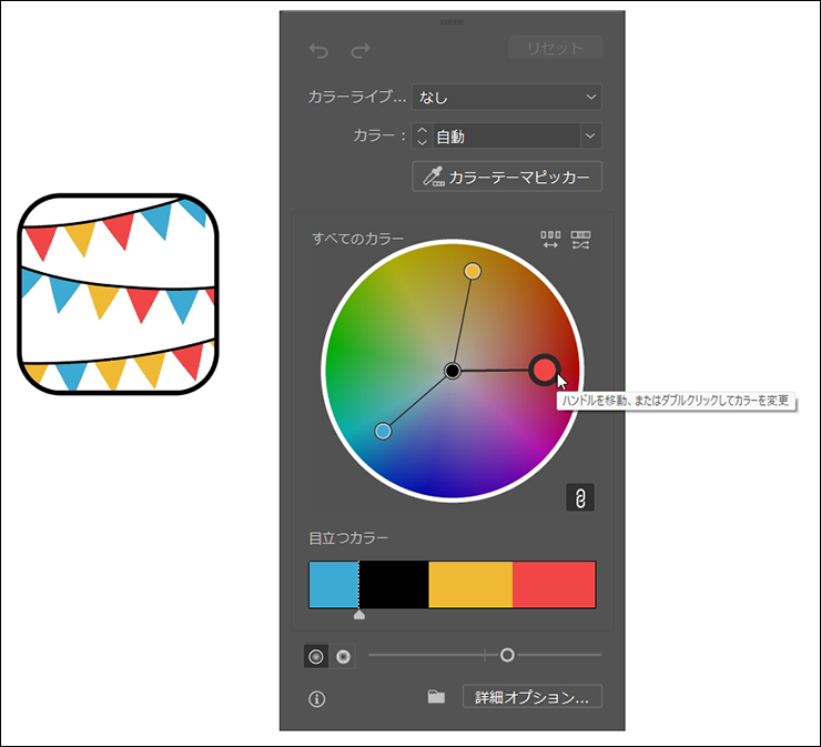また、ハンドル(円ボタン)をダブルクリックして、表示されたカラーピッカーで直接色を指定して、色を置き換えることもできます(図11)。