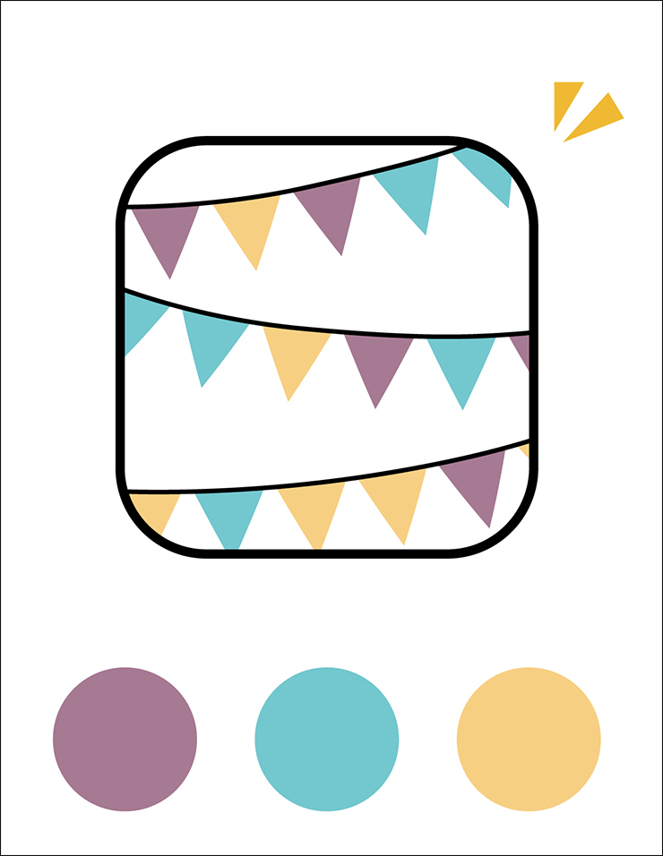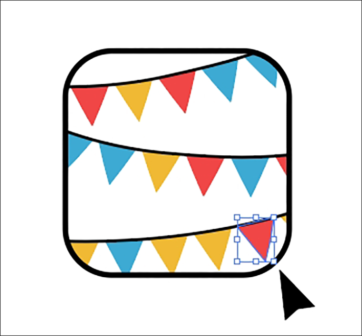 たとえば、ここでは旗の赤色を丸のオブジェクトの紫色に変更してみます。表示されたダイアログの左側が現在の色で、右側が変更後の色です(図14)。紫色を赤色の方へドラッグ&ドロップすると、色を置き換えることができました(図15)(図16)。