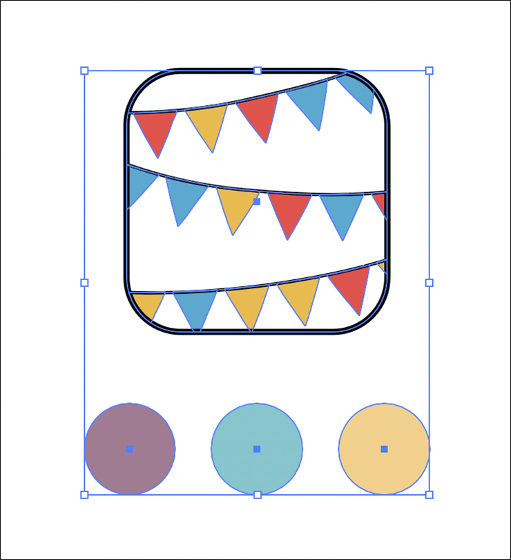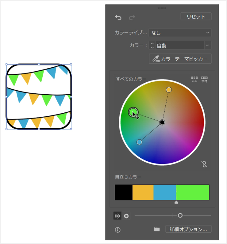 他のオブジェクトにある特定の色と、同じ色にしたいという場合は、制作しているオブジェクトと変更したい色を持つオブジェクトすべてを選択して(図12)、[オブジェクトを再配色]ダイアログの[詳細オプション...]をクリックします(図13)。
