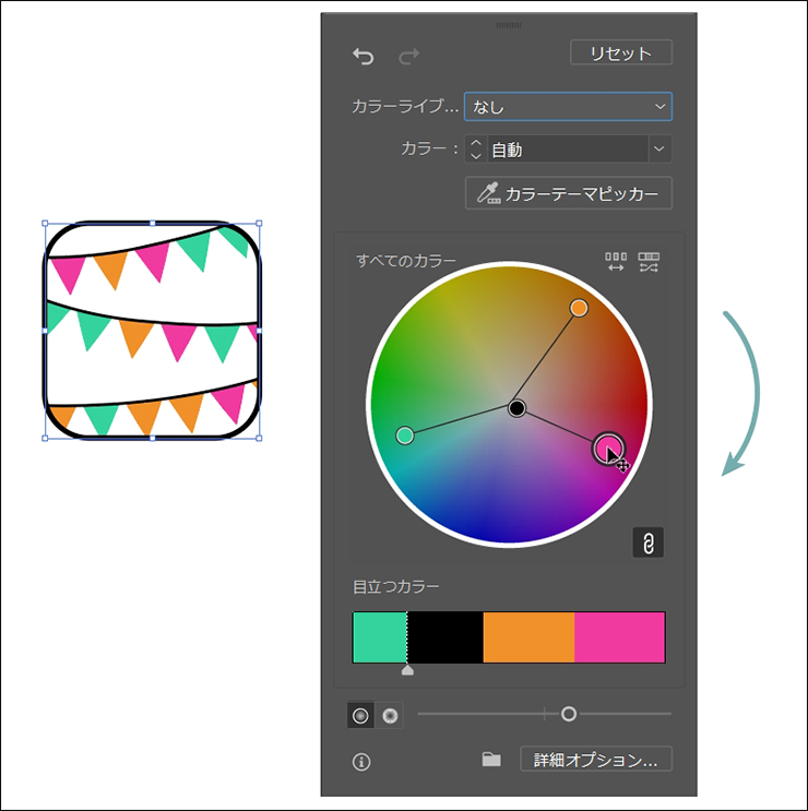 [オブジェクトを再配色]機能は、全体の配色バランスを保ったまま、色の置き換えができます。