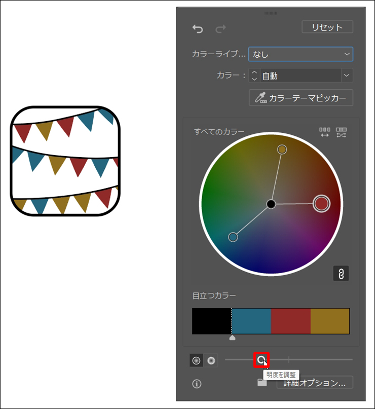 明度は、下部のスライダー[明度を調整]で、変更できます(図8)。