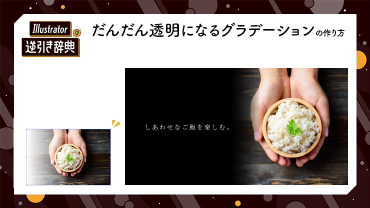 Illustrator(イラレ)で、画像などが徐々に透明になっていくグラデーションの作り方を解説します。