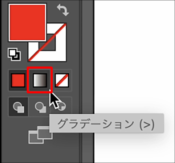この長方形にグラデーションをつけていきます。ツールバー下部の「グラデーション」をクリックします(図3)。このとき必ず白黒のグラデーションにしておく必要があります。詳しくは後ほど。