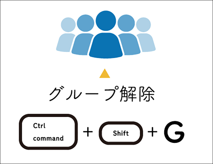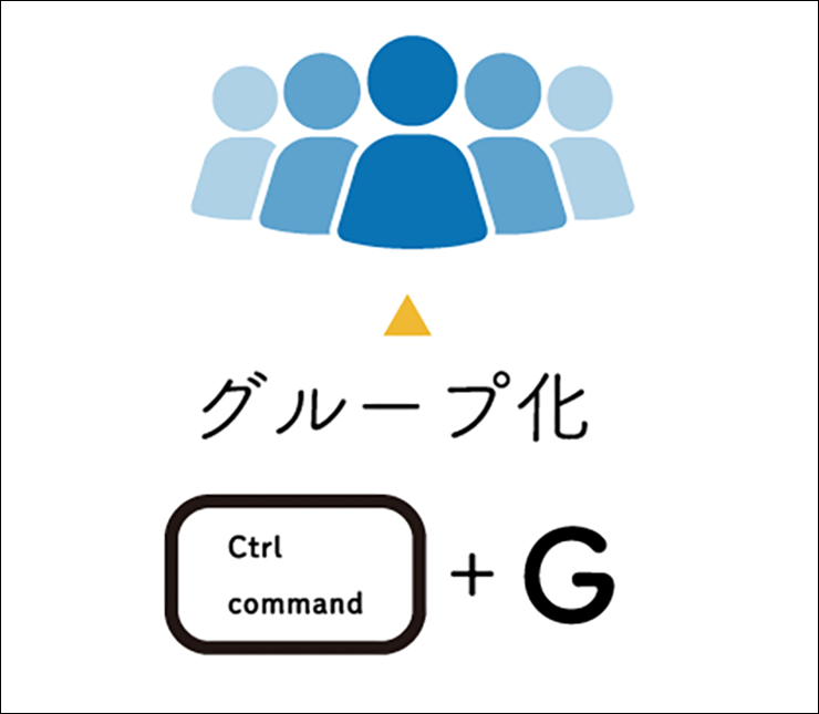 ■使用する機能「グループ」command+Gキー(WindowsではCtrl+Gキー)、「グループ解除」command+Shift+Gキー(WindowsではCtrl+Shift+Gキー)
