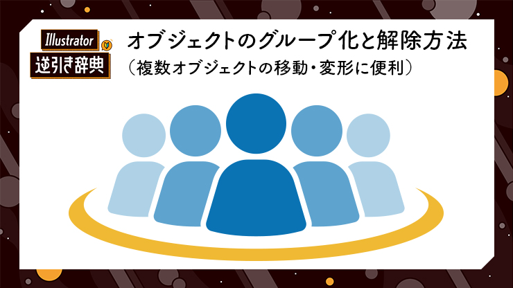 Illustrator(イラレ)で作業していて、オブジェクト(図形や線)の数が増えてくると、選択ツールでクリックして選ぶだけでも時間がかかります。そんなときに、オブジェクトをグループ化しておくと、一括で選択できたり、複数を同時に変形・編集したり、作業を効率化することができます。ここではグループ化と解除方法を紹介します。