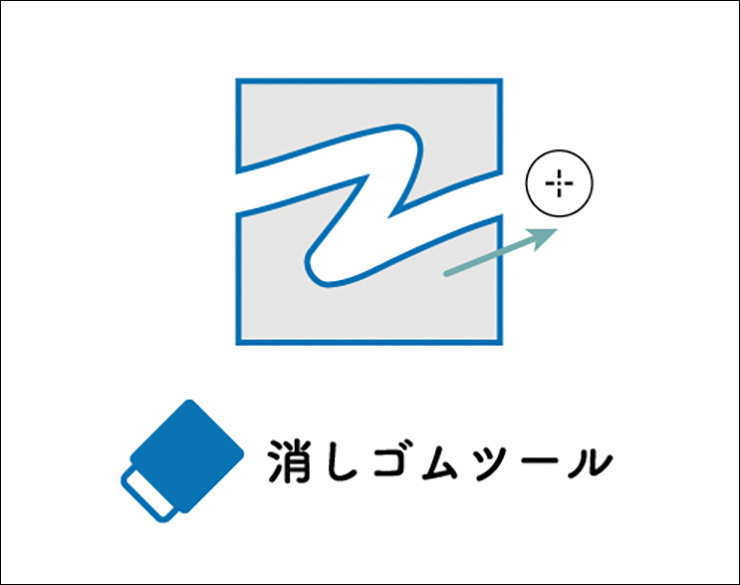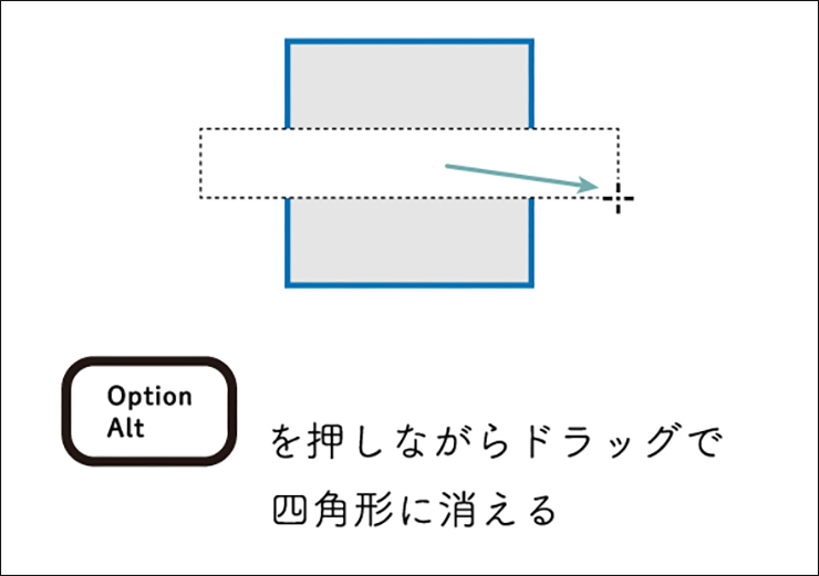 消しゴムツールを選択して、shiftキーを押しながらドラッグすると直線または斜め45°の角度のラインで消去(分割)できます。また、optionキー(Macの場合。WindowsではAltキー) を押しながらドラッグすると、任意の線幅の四角の形で消去することができます(図4)。