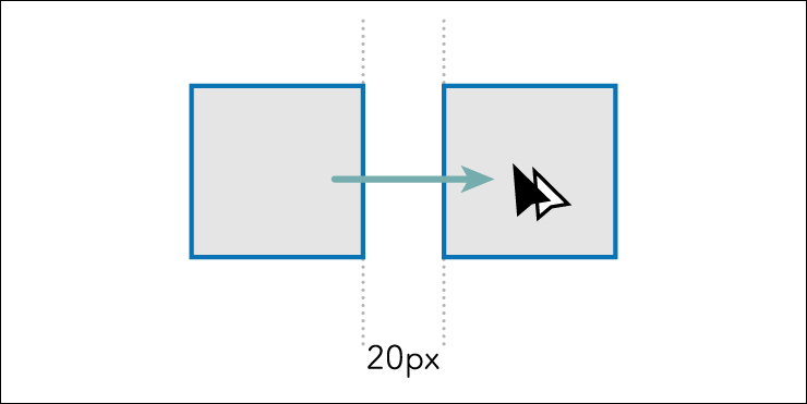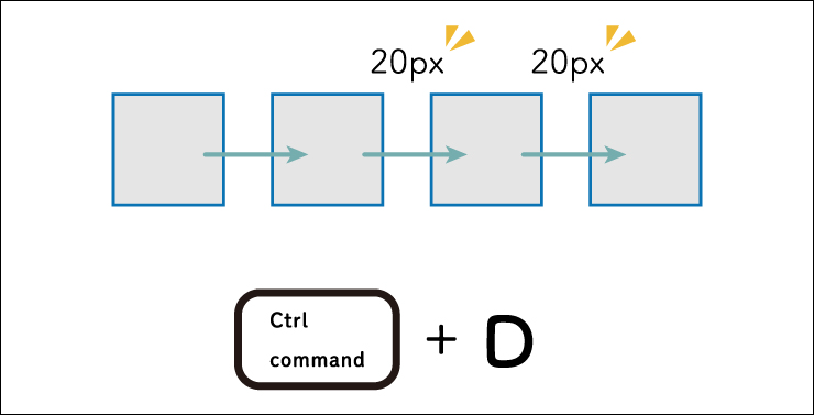 たとえば、直前の動作で「オブジェクトを右方向に20px複製」していた場合(図4)、command+Dキー(Macの場合。WindowsではCtrl+Dキー)を押すたびに、右方向に20pxの位置で複製します(図5)。