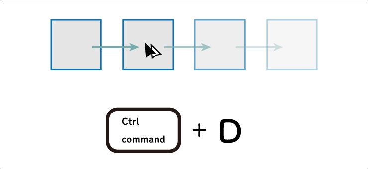 ■使用する機能「複製:option(WinはAlt)+ドラッグ」、「水平垂直複製:option(WinはAlt)+shift +ドラッグ」、「繰り返し:command(WinはCtrl)+D」