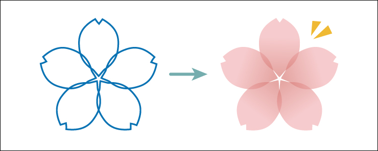 回転コピーされたオブジェクトをさらにコピーしていけば、花びらなどさまざまな表現が可能になります(図7)。
