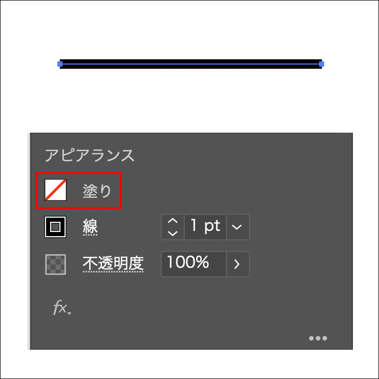 ダイアログボックスには[線の塗り]のチェックボックスもありますが、通常はオフ(チェックが外れた状態)のままでOKです。オフの場合は[塗り]がなし(透明)の線になります(図6)。