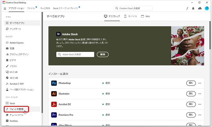 Creative Cloudの「Illustrator単体プラン」から「Creative Cloudコンプリートプラン」まですべてのプランで利用できるので、Illustratorの最新バージョンが利用できる環境であればAdobe Fontsも利用することが可能です。ここではその使い方を説明します。