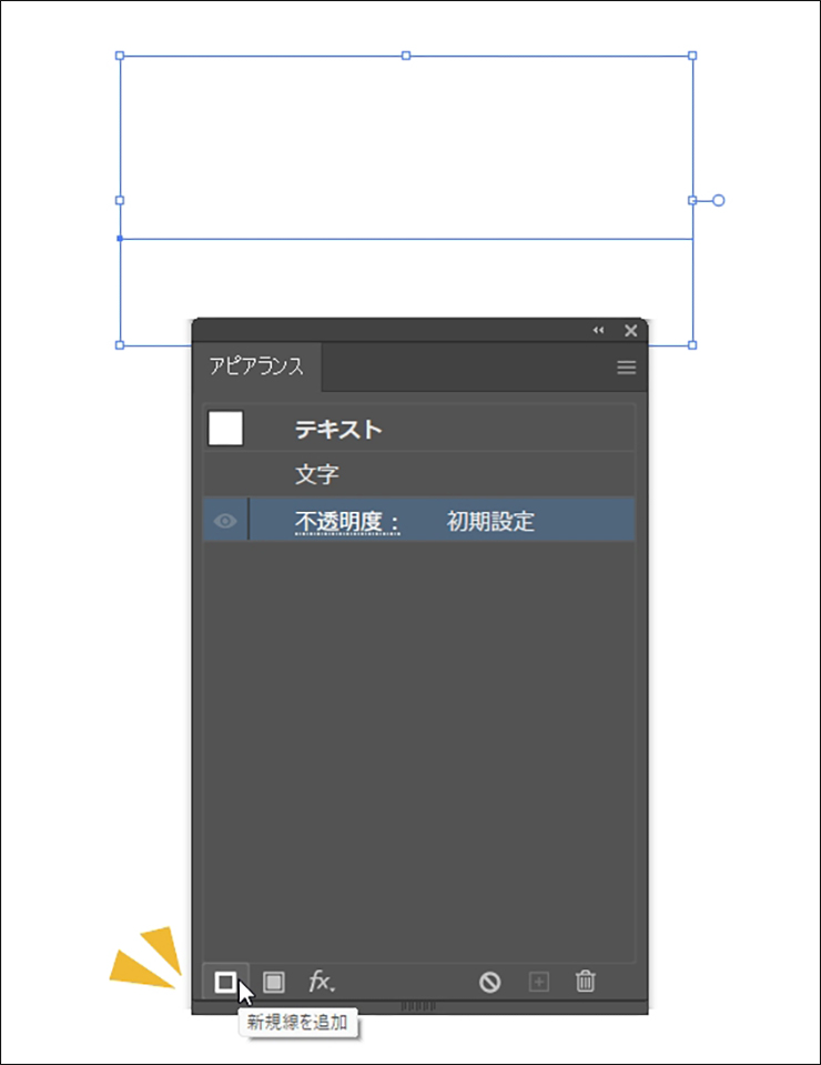 再び選択ツールを選んだあと、アピアランスパネルの左下にある[新規線を追加]と[新規塗りを追加]のボタンをクリックし(図7)(図8)、新たに追加された[塗り]と[線]を好みのカラーや線幅に設定します(図9)。