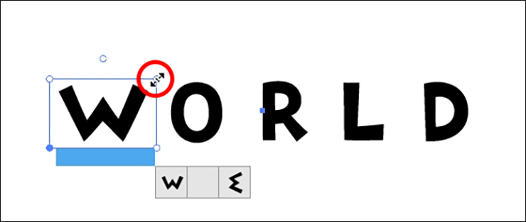 左上のハンドルをドラッグすると、縦方向に文字を拡大・縮小できます(図21)。