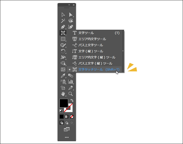 文字タッチツールは、ツールバーの文字ツールを長押しすると選択できます(図19)。