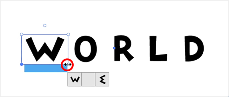右下のハンドルをドラッグすると、横方向に文字を拡大・縮小できます(図23)。