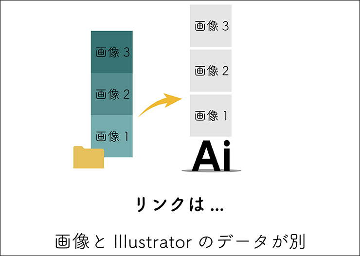 これで無事に画像は配置されましたが、実はIllustratorであつかう画像には、「埋め込まれた画像」と「リンクされた画像」の2種類があります(図4)。