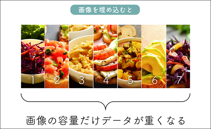 読み込み時間を短縮したい場合は、リンクで画像を配置します。