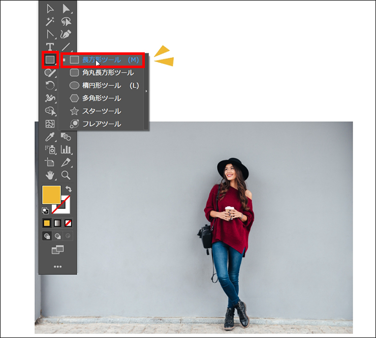 クリッピングマスクで画像を切り抜くには、まず、画像の前面に長方形ツールなどで作成したオブジェクトを配置します(図9)(図10)。