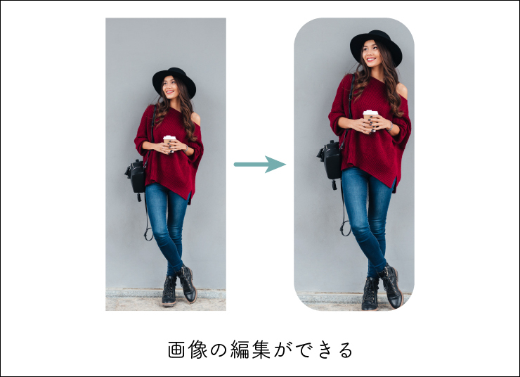 - 編集後画像は埋め込まれる