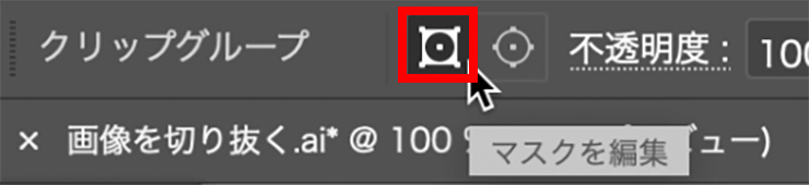 クリッピングマスクは切り抜いた後の再編集も可能です。画面左上のコントロールパネルの四角マーク(マスクを編集)を選択している状態であれば、マスクに使った長方形の形を編集できます(図13)(図14)。