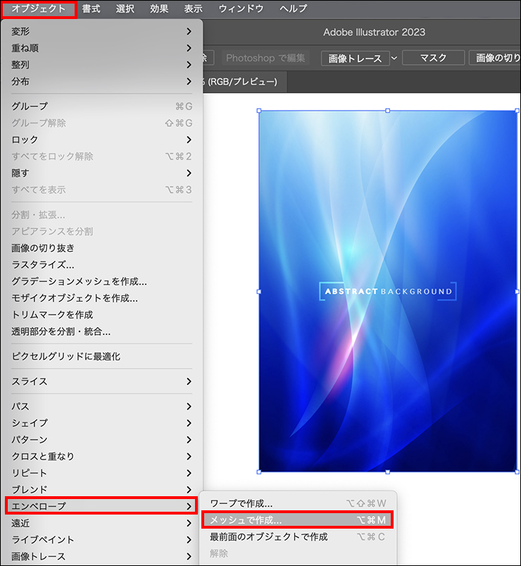 ■使用する機能「ペンツール」「エンベロープ」「メッシュ」「自由変形ツール」「クリッピングマスク」