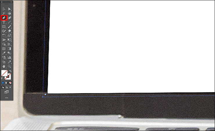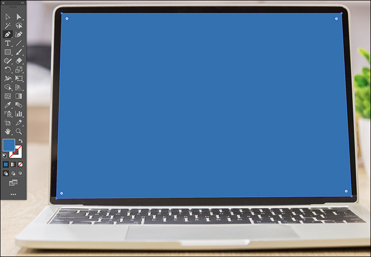 続いて、ペンツールでディスプレイの形に沿ってオブジェクトを作成します。ほんの少しだけ大きめに作るとしっかり画面を隠すことができます(図5)。ここでは形がわかりやすいように[塗り]は青にしてオブジェクトを作成しました(図6)。