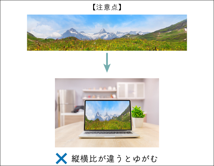 また、画像とオブジェクトの縦横比が違うと合成画像が歪んでしまいます(図11)。できる限り同じ比率の画像を用意すると自然な仕上がりで画像を合成することができます。
