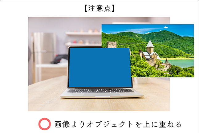この「“エンベロープ”→“最前面のオブジェクトで作成”」で画像合成するときの注意点は、合成する画像よりオブジェクトを前面に重ねることです(図10)。
