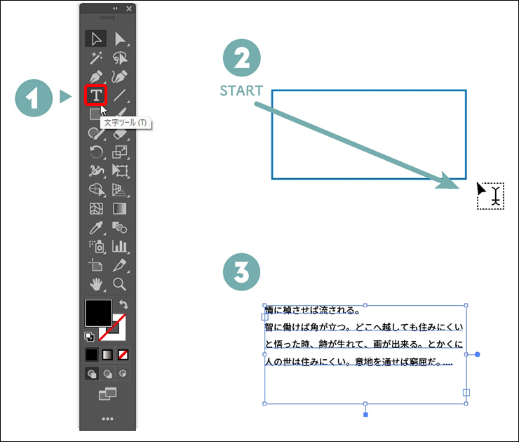 Illustratorの「テキストの回り込み」機能を利用すると、画像や図形などのオブジェクトを避けるように文字を組むことができます。