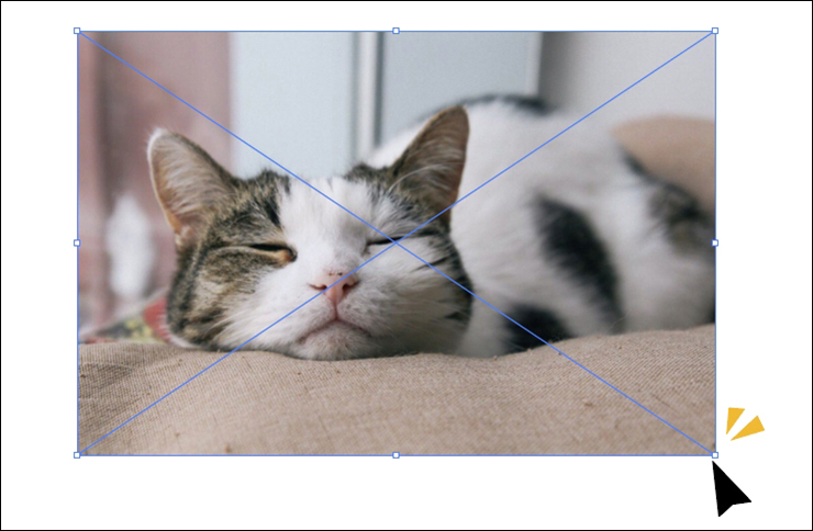 その画像が選択された状態で(選択されていない場合は、選択ツールでクリックして選択します)、オブジェクトメニュー→“テキストの回り込み”→“作成”を実行すると、画像のバウンディングボックスの周囲にひと回り大きな枠が表示されます(図3)。