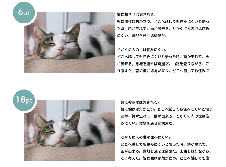 [オフセット]が6ptのときと18ptにしたときを見比べてみると、その効果が分かりやすいですね(図7)。