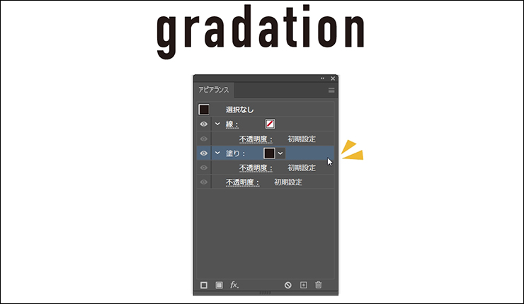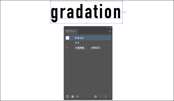 「アピアランス」は、ひとつのオブジェクトに対して複数の[塗り]や[線]を設定できる機能です。図形(シェイプ)だけでなく文字にも利用できます。この機能を使ってグラデーションをかけると、あとからでも簡単にテキストを修正することが可能です。
