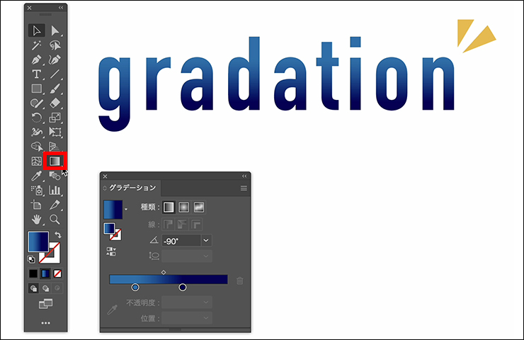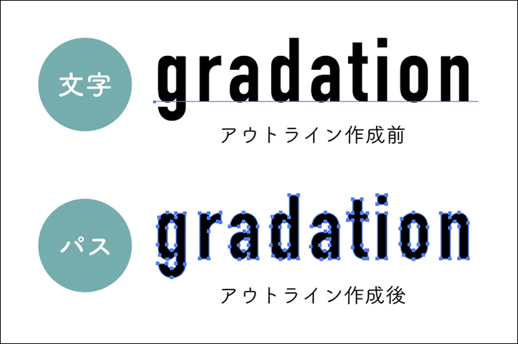 Illustrator(イラレ)で文字にグラデーションをつける方法を解説します。文字を図形化(文字をアウトライン化してパスで構成されたデータに変換)してからグラデーションをかける方法と、文字データのままグラデーションをかける方法の2通りを紹介します。
