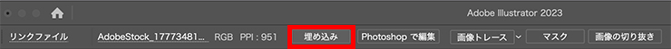 画像は選択した状態のままで、ウィンドウメニュー→“コントロール”にチェックを入れて、画面上側に表示されたコントロールパネルの[埋め込み]を押して、画像を埋め込みにします(図2)。*画像の埋め込みに関する詳しい解説記事はこちら「画像を埋め込んで配置する/画像をリンクさせて配置する」。