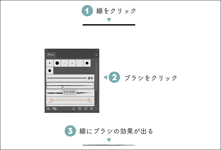 ペンツールなどであらかじめ描画しておいた線に対して、ブラシを適用することも可能です。手順は次の通り(図6)。