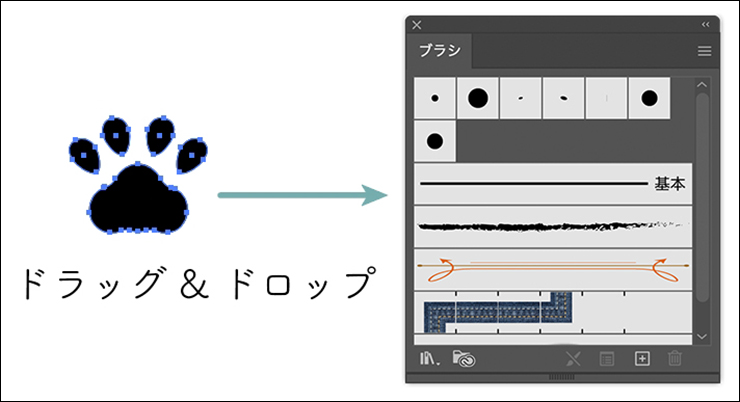 2.元オブジェクトをブラシパネルにドラッグ&ドロップ